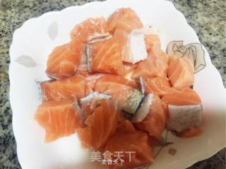 3.三文魚洗干凈切成塊。